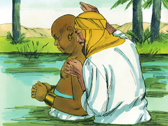Philip baptizing the Ethiopian official (Acts 8:26-40). Free Bible Images.