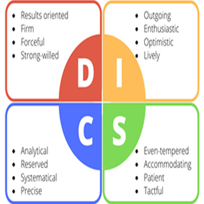 4 personality types: Dominance, Influence, Steadiness, Conscientiousness. Image from Speakout.com.