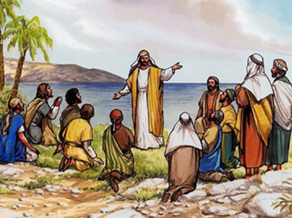 Jesus giving the Great Commission to his disciples. Image from Free Bible Images.